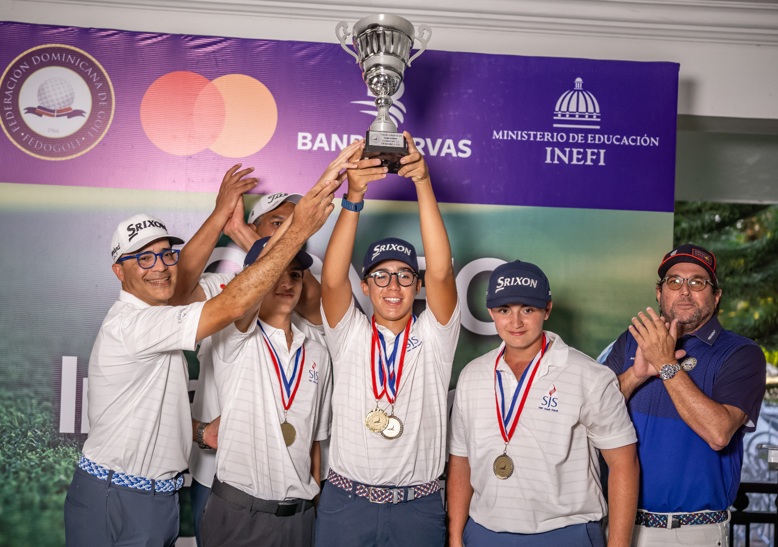 JUAN DOLIO, SAN PEDRO DE MACORÍS.- El Colegio Saint Joseph se coronó como el gran campeón del Torneo Intercolegial 2025, que celebró por tercer año consecutivo la Federación Dominicana de Golf de la mano del Instituto Nacional de Educación Física (Inefi) y gracias a Mastercard Banreservas.