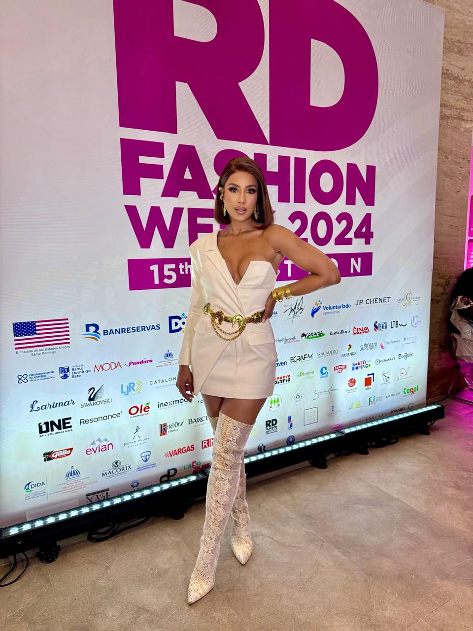 Santo Domingo – La cantante de pop urbano Sarodj deslumbró en la reciente Semana de la Moda de República Dominicana (RDFW), donde su presencia y estilo auténtico capturaron la atención de todos los asistentes. Con su esbelta figura, Sarodj se destacó en el desfile inaugural, diseñado por la renombrada diseñadora Geannina Azar, luciendo un elegante vestido blanco tipo blazer que reflejaba su esencia única.