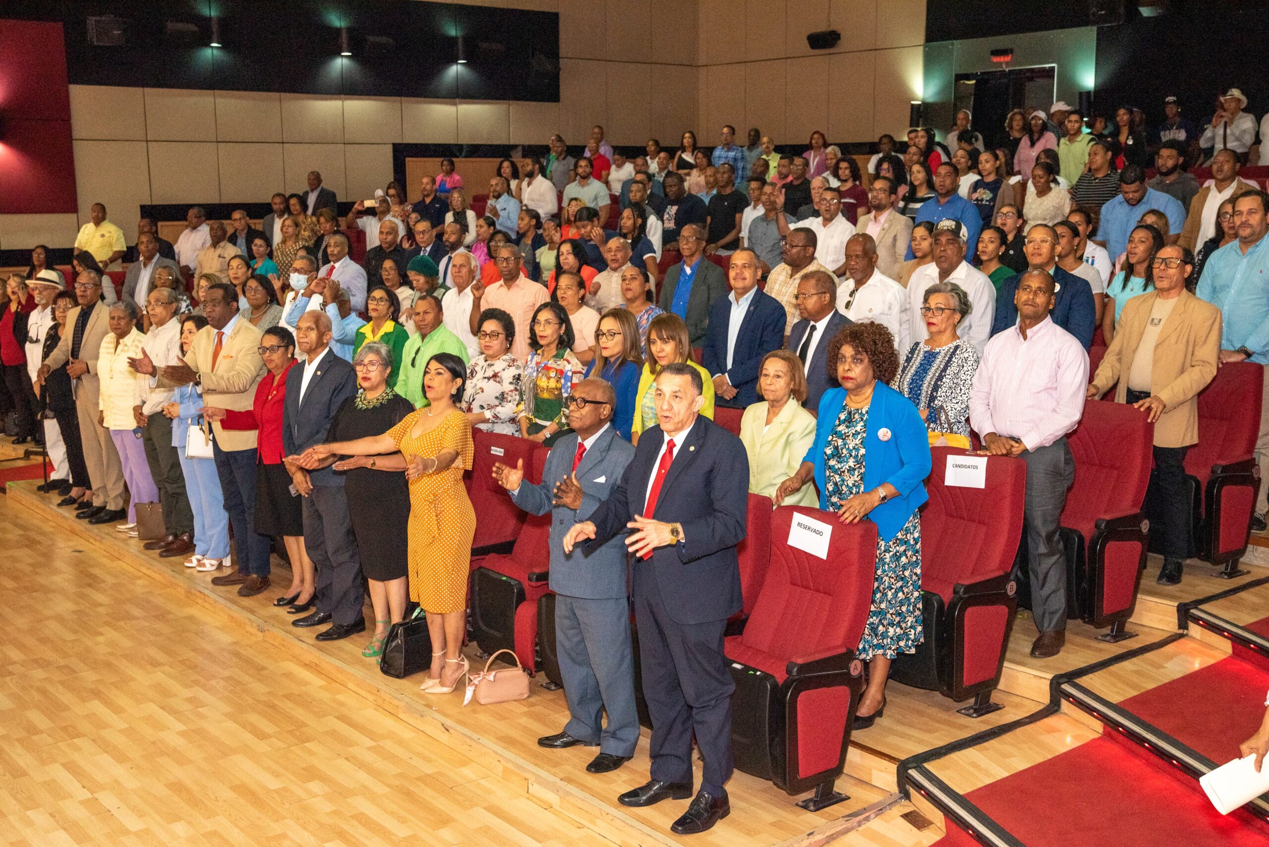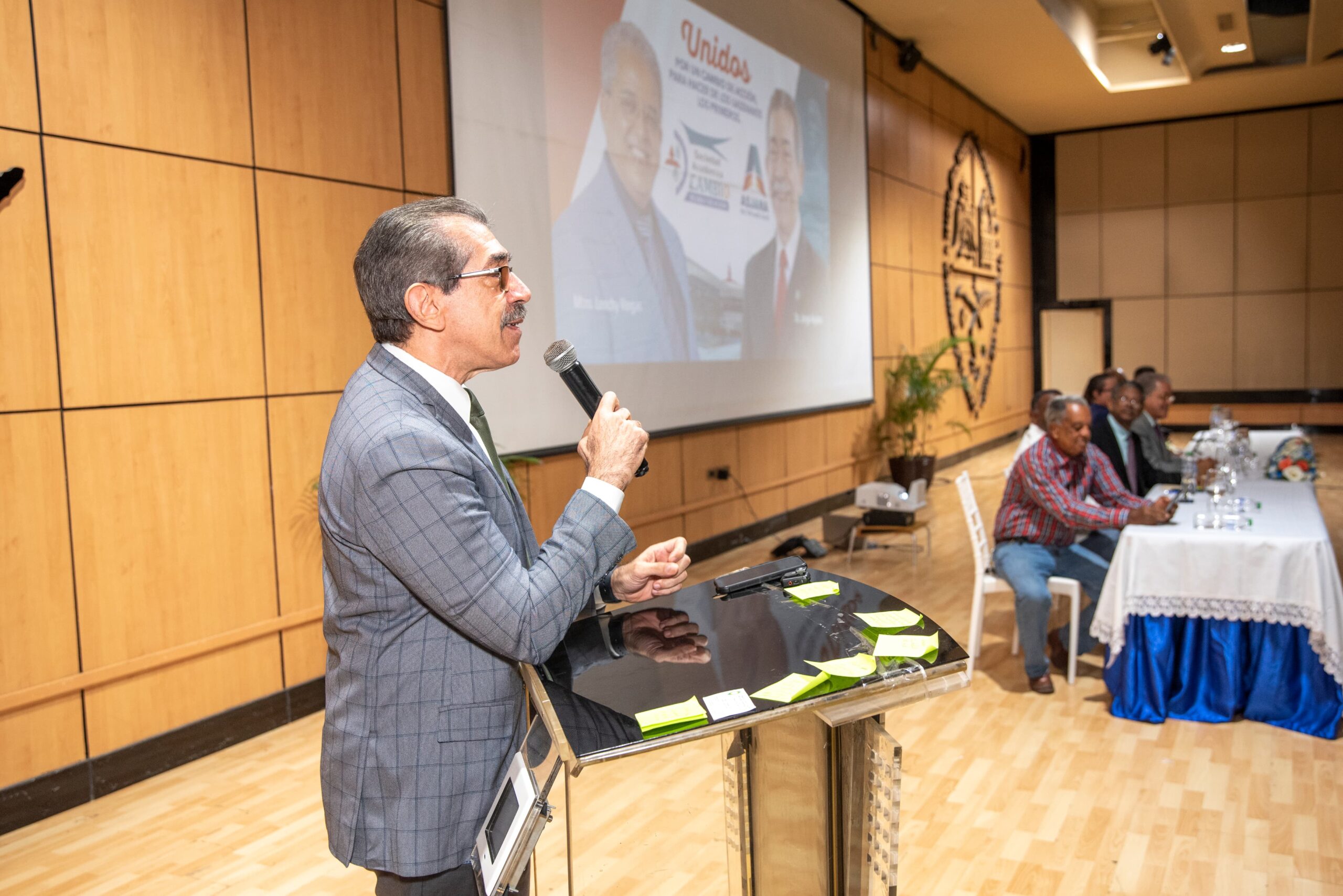 El acto de apoyo se realizó en el auditorio Manuel del Cabral de la Biblioteca Pedro Mir, donde un numeroso grupo de catedráticos de la Sociedad Académica formalizó su integración al proyecto de gestión por la internacionalización y la excelencia, que impulsa Asjana David rumbo a la rectoría.