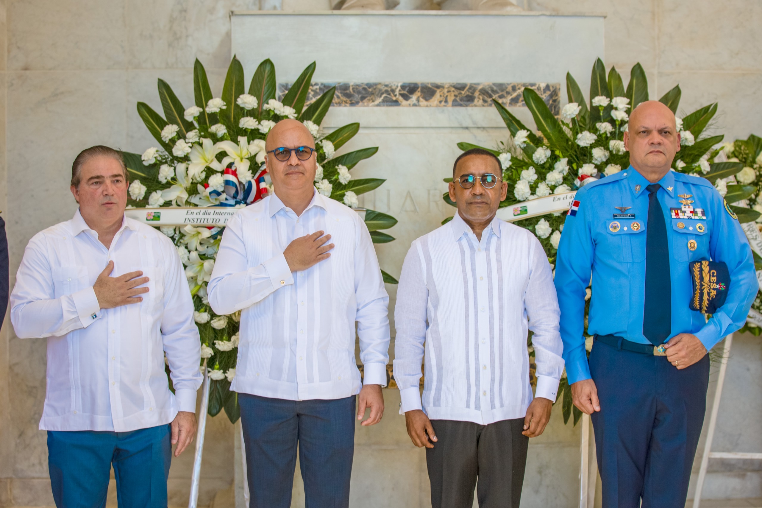La ofrenda floral fue acompañada por la banda de música de la Fuerza Aérea Dominicana, que entonó el Himno Nacional, mientras que la misa fue oficiada por el reverendo padre Milcíades Florentino.