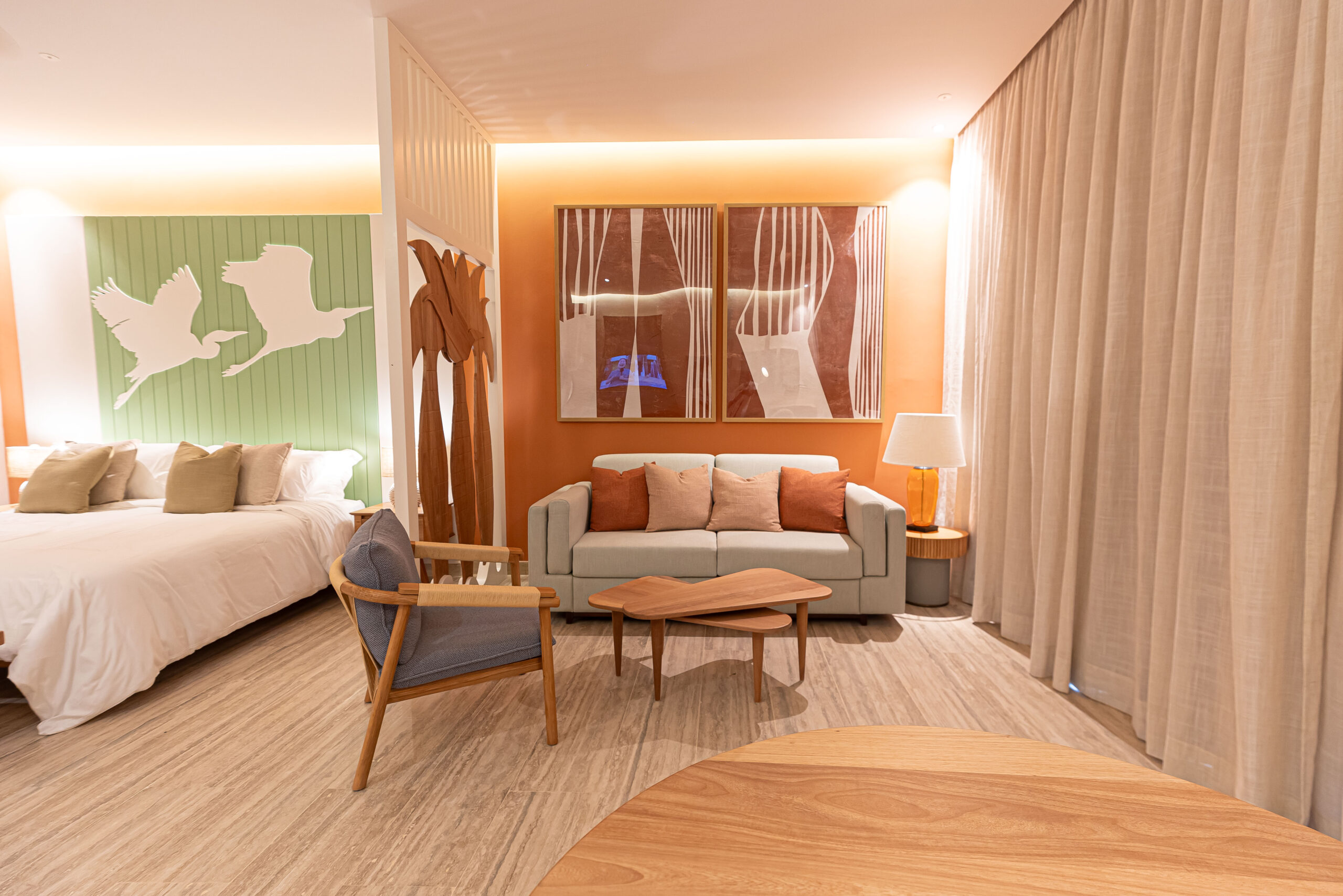 Con detalles que recrean la biodiversidad natural de Cabo Rojo y las exóticas vistas del lugar, Freund mostró en imágenes cómo luce el interior de la habitación modelo de uno de los tres hoteles en construcción en la primera fase del proyecto de desarrollo turístico de Cabo Rojo. En su visita a la edificación del hotel, que operará la cadena hotelera española Iberostar y contará con 580 habitaciones, Freund destacó que “tal como lo prometimos en el segundo trimestre del año 2024, la habitación modelo del hotel Iberostar se encuentra finalizada”.