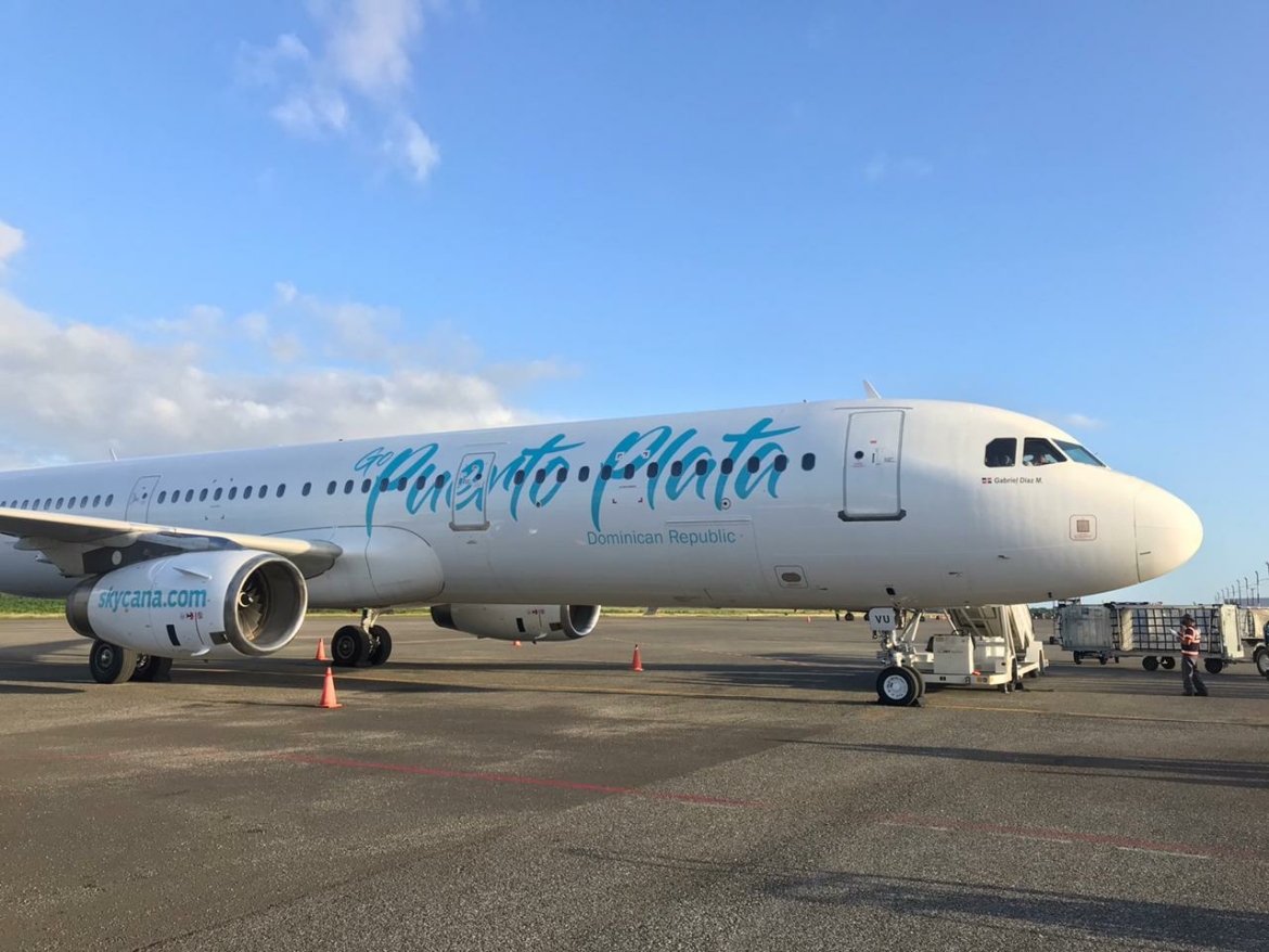 Aeropuerto Las Américas. –La nueva línea aérea dominicana, Sky Cana, anuncia la llegada de su primer avión al país en la tarde de hoy. En una operación conjunta con Sky High, compañía que tendrá la responsabilidad operativa, la nueva aerolínea nacional iniciará sus operaciones el próximo día 14 de diciembre del presente año, con aviones Airbus 321 y capacidad de 220 asientos.
