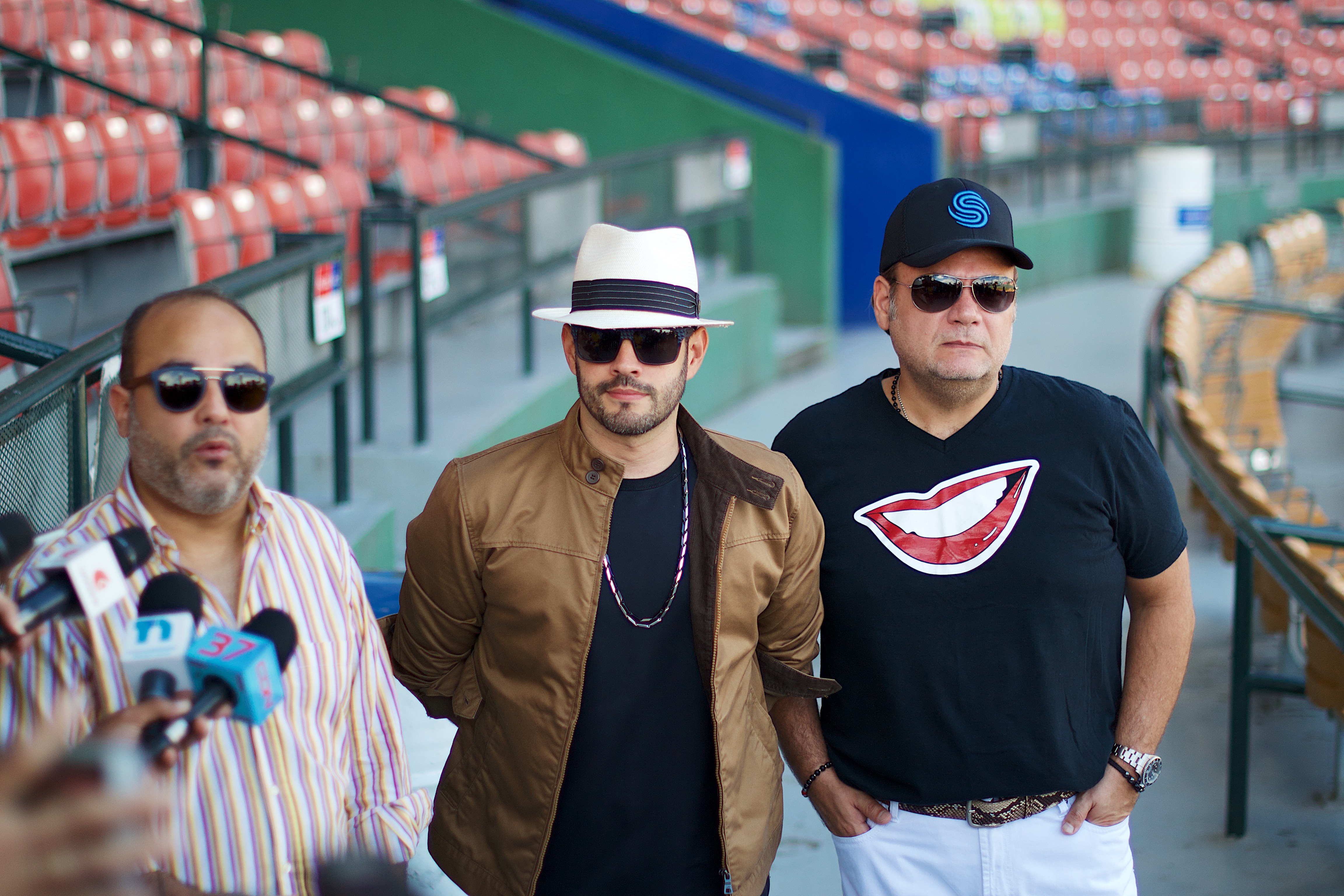Durante un encuentro con la prensa, organizado frente al escenario en el Estadio Quisqueya, donde ambos artistas actuaran este sábado 10 de febrero, los productores del evento, Pedro García y Eduardo Durán ofrecieron los detalles del mismo.