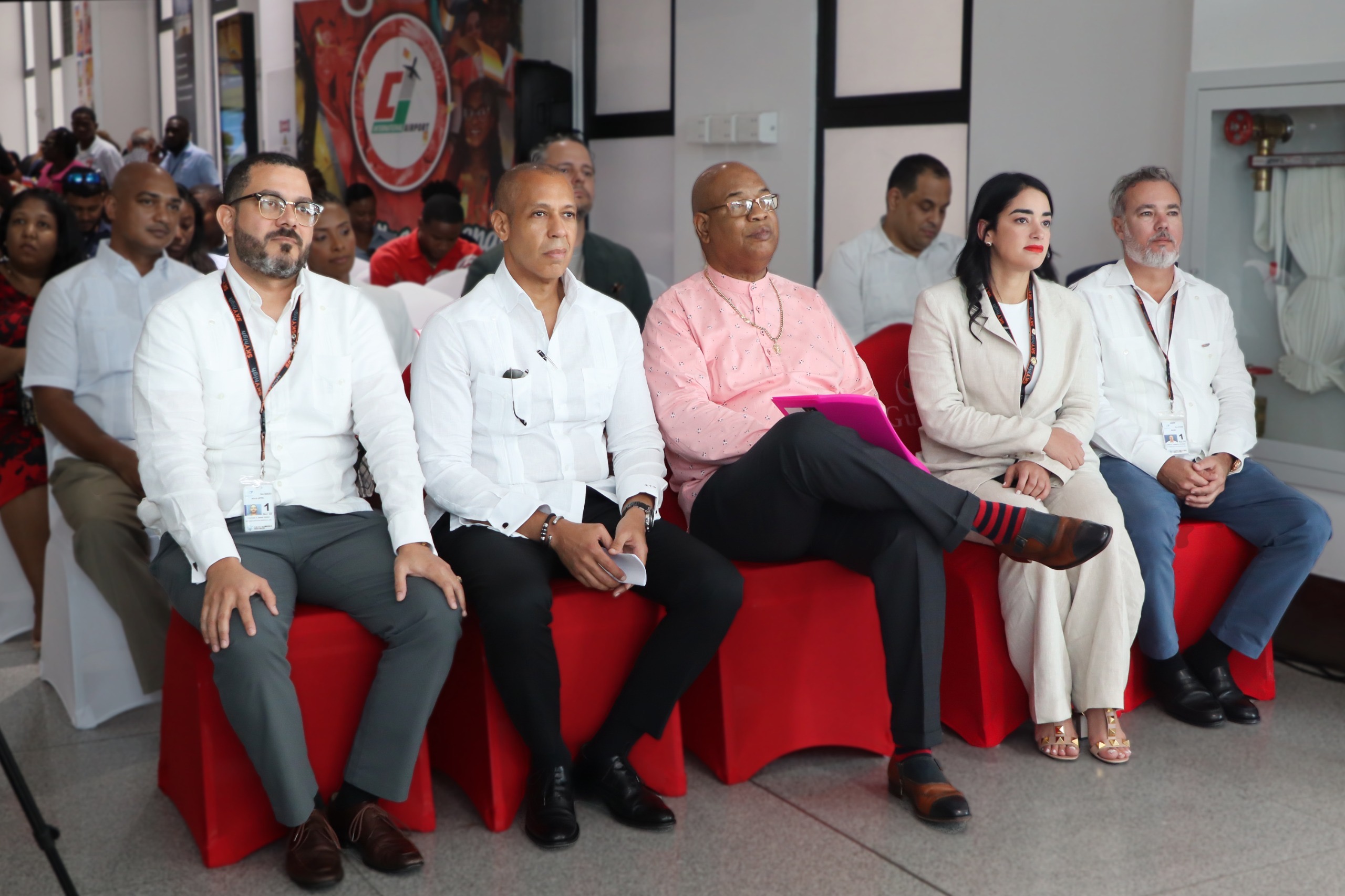 El evento contó con la presencia del Presidente de SkyHigh Dominicana, Juan Chamizo, la Vicepresidenta Cesarina Beauchamps, el Gerente Comercial Víctor Nina, así como representantes del Aeropuerto Internacional Cheddi Jagan y la Cámara de Comercio de Guyana, entre otros destacados invitados.
