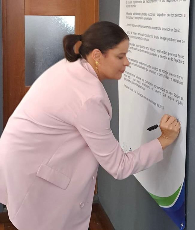 El evento concluyó con la firma en una lona que simboliza la Carta Compromiso por un Turismo Responsable y con la bendición del sacerdote de la Parroquia San Antonio de Padua.