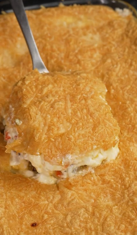 - Esparce el puré en un molde engrasado de 13 x 9 pulgadas. Cubra con el bacalao cocido y el queso crema ablandado. Reserve.