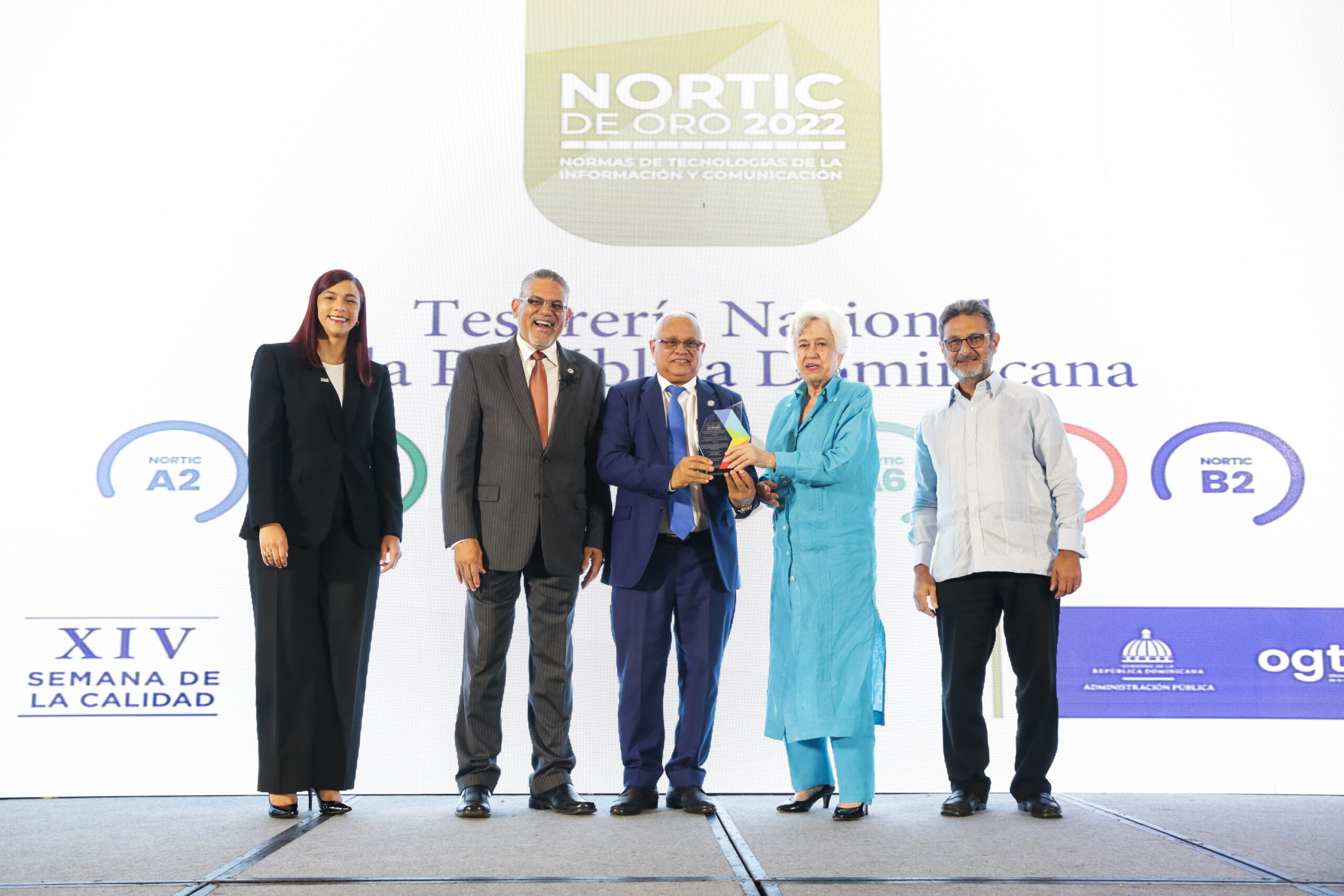 La Tesorería Nacional (TN) logró el premio Nortic de Oro 2022 por la implementación, documentación y aseguramiento del uso correcto de tecnologías de la información y comunicación de forma consistente, con el interés de mejorar los servicios públicos en beneficio de la ciudadanía.