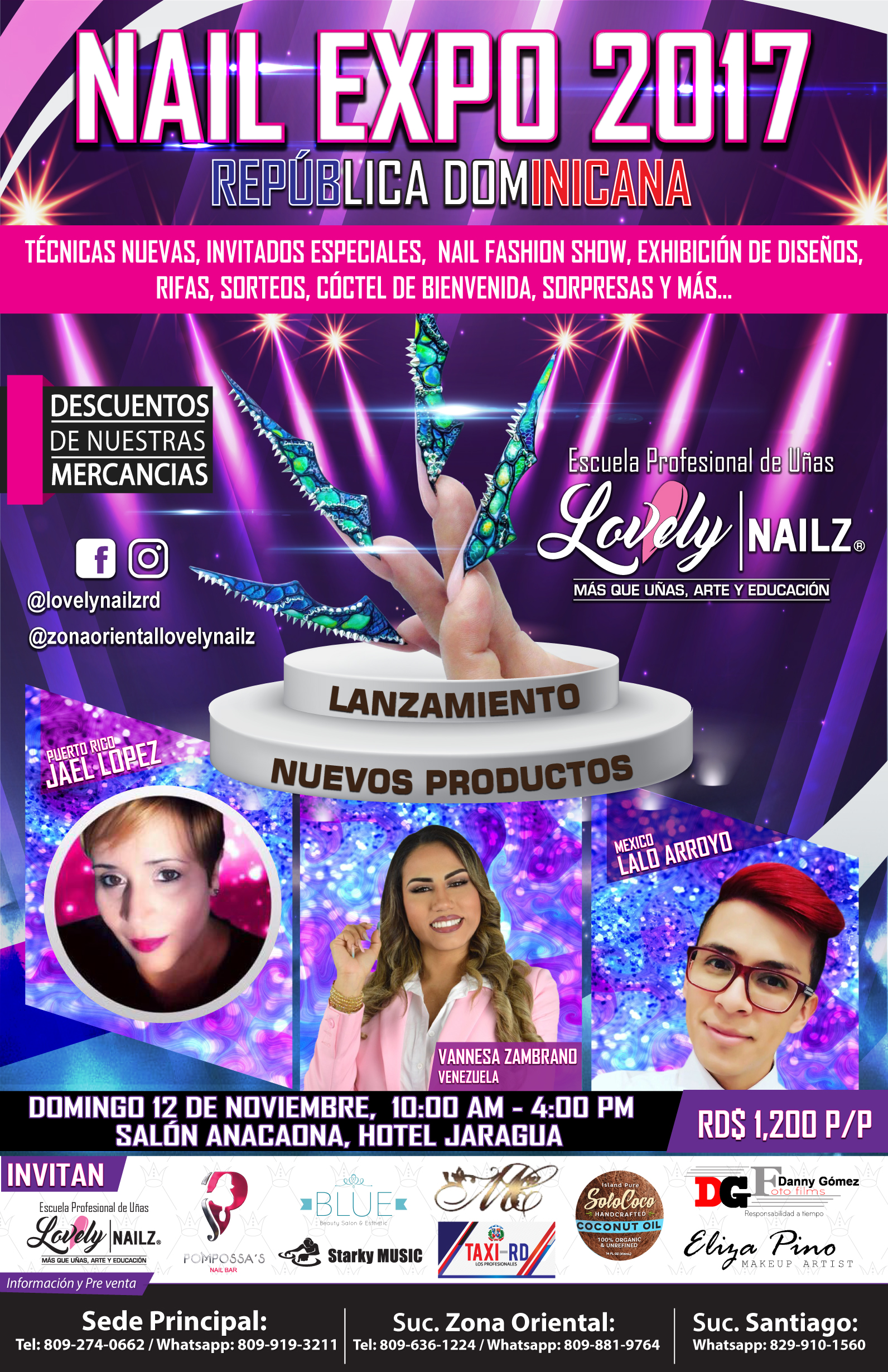 Esta iniciativa, creada y organizada por la Escuela Profesional de Uñas Lovely Nailz, les brindara a los participantes y público en general, no sólo la picadera y compra de los productos que estaremos ofreciendo, sino también del disfrute de una excelente programación musical y artística nunca antes propuesta en el Distrito Nacional (Coctel de bienvenida, Invitados Especiales, Nail Fashion Show, Exhibición de Diseños, Nuevas Técnicas, Lanzamiento de Nuevos productos, Rifas de maletas de productos, lámparas, máquinas y combos de productos, sorpresas y más).