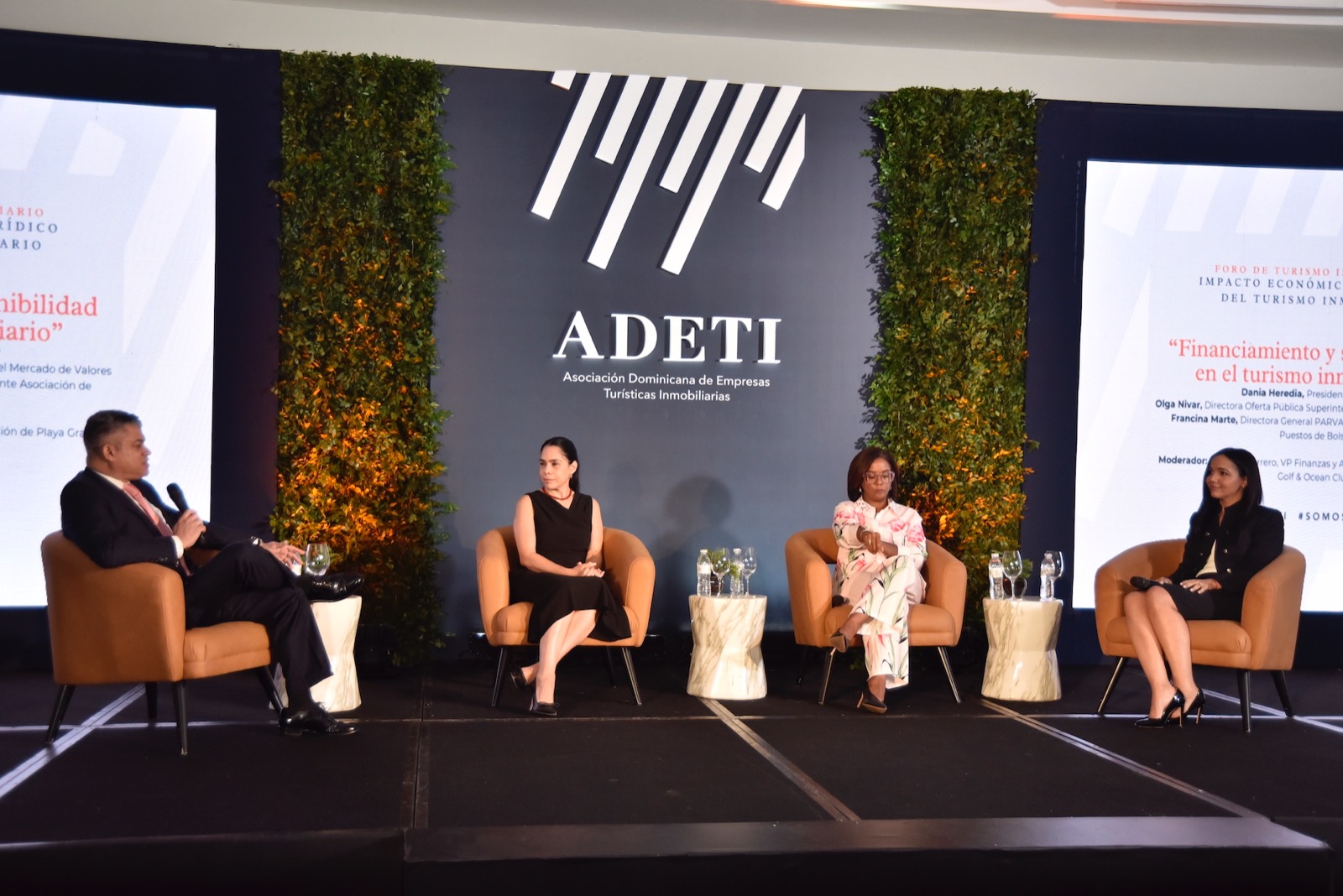 Además, se llevó a cabo un primer panel llamado «Más allá de sol y playa», en el que participaron figuras como Ellis Pérez, ex Secretario de Estado de Turismo; Juan Bancalari, presidente de la Asociación de Marinas Deportivas y Clubes Náuticos; y David Llibre, presidente de ASONAHORES. Posteriormente, se desarrolló un segundo panel denominado «Financiamiento y Sostenibilidad en el Turismo Inmobiliario», en el que participaron expertos como Dania Heredia, Presidente de ECORED; Olga Nivar, directora de oferta pública de la Superintendencia del Mercado de Valores; y Francina Marte, directora general de PARVAL y Presidente de la Asociación de Puestos de Bolsa.