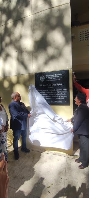 La Universidad Autónoma de Santo Domingo (UASD), a través de la Vicerrectoría de Extensión, en coordinación con la Dirección de Deportes y la Facultad de Ciencias de la Educación (FCE), develó una tarja en honor al extinto entrenador de voleibol, maestro Miguel Cruz, en el Polideportivo “Tony Barreiro”.
