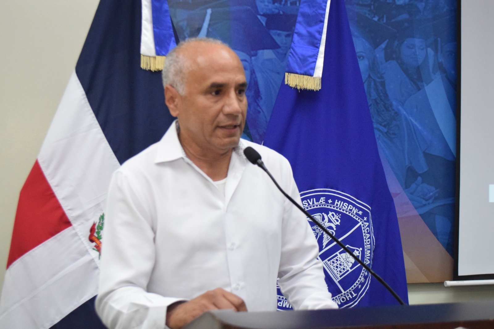 Durante el acto inaugural, el maestro Rafael Veras Granados, Subdirector Administrativo del Recinto, ofreció unas palabras en representación del Director General, maestro Juan Arias Fuentes, resaltando la importancia de preservar la memoria histórica de la nación dominicana.