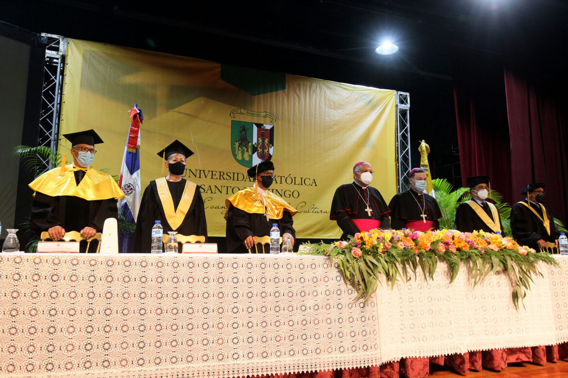 Inició con un desfile y la invocación al Altísimo a cargo del arzobispo metropolitano de Santo Domingo, Francisco Ozoria Acosta, presidente de la Fundación Universitaria Católica y Gran Canciller del centro de altos estudios.