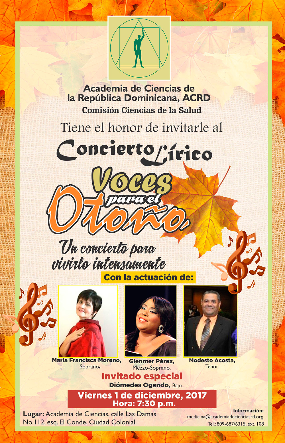 Un grupo de cantantes líricos protagonizará el concierto “Voces para el Otoño”, que será presentado este viernes 01 de diciembre en la Academia de Ciencias de la República Dominicana.