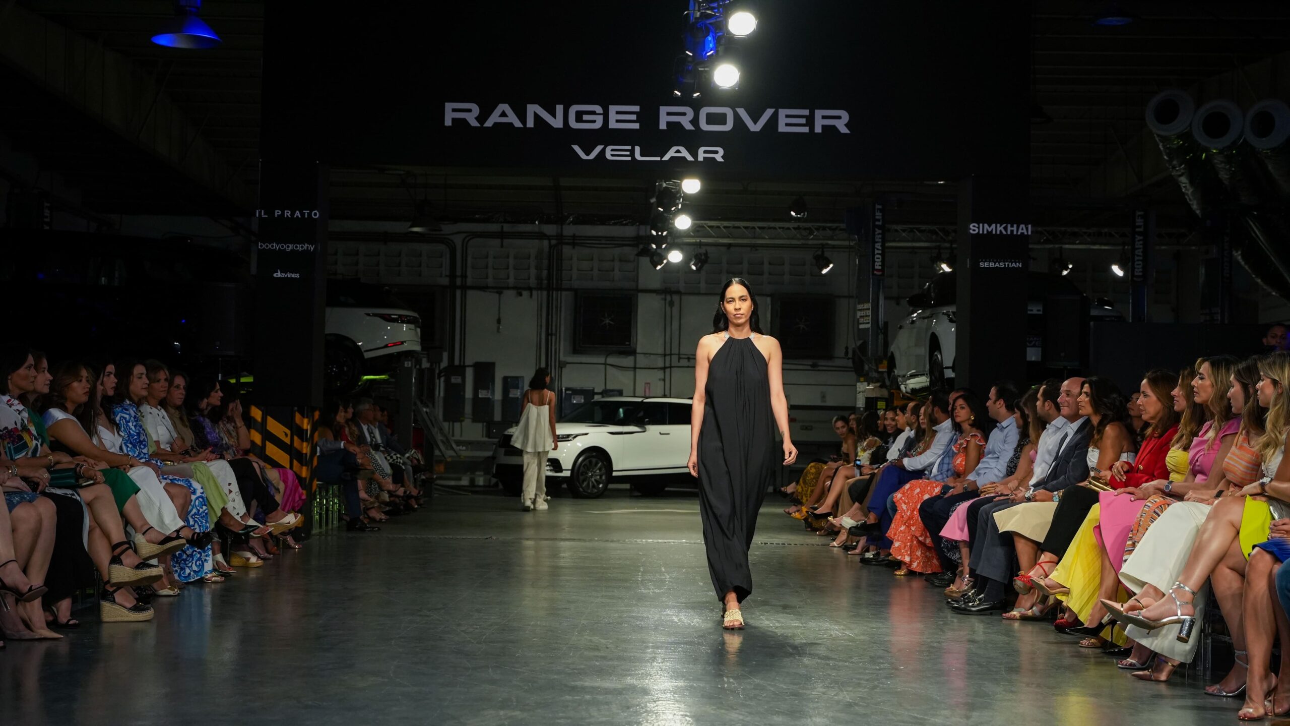 Los asistentes al evento fueron recibidos con una exhibición de lujo, donde los modelos de la espectacular Range Rover Velar se mezclaron con la moda de Simkhai.