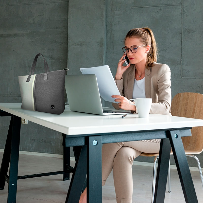 las mujeres podrán llevar laptops de hasta 15,6 pulgadas con toda comodidad, mientras que sus prácticos bolsillos ofrecen espacio adicional para tus accesorios y demás dispositivos portátiles que desees guardar. La portabilidad inigualable y la cómoda distribución de los bolsillos se fusionan en un diseño inconfundible de dos tonos, acentuado con terminaciones de doble costura los cuales garantizan máxima durabilidad a través del tiempo.
