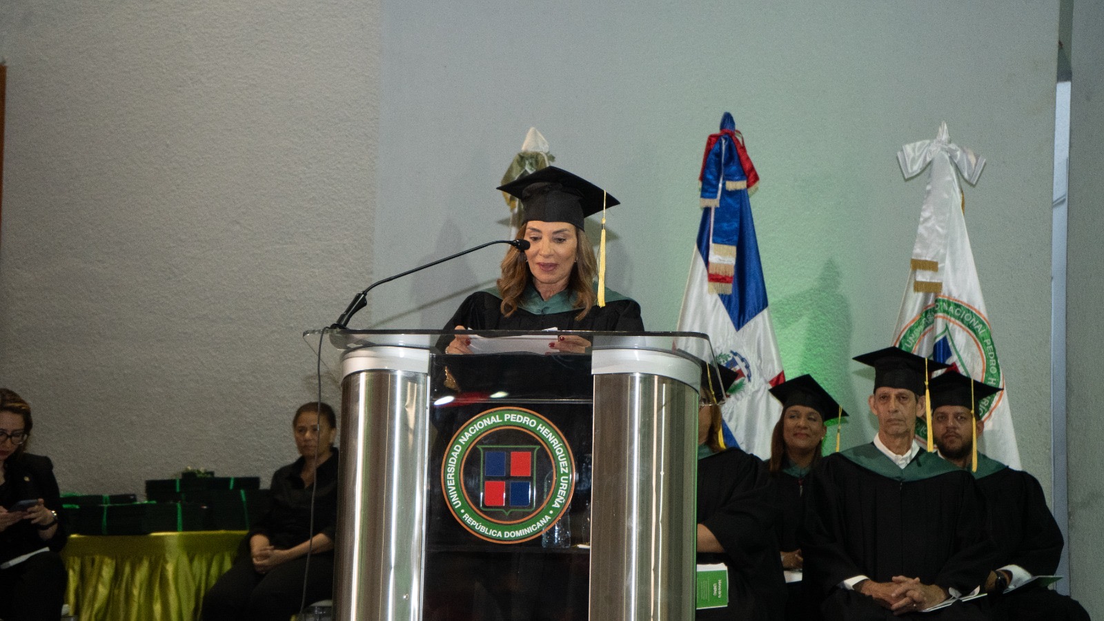 Durante la ceremonia, varios oradores invitados ofrecieron palabras de motivación y reflexión a los graduados. Entre ellos se destacaron Sigmund Freund, Ministro de Administración Pública; Haydée Kuret Pacheco, miembro del Consejo de Directores de Grupo Punta Cana; Tania Ares Guzmán, empresaria; y Federico Antonio Pérez, Director de la Regional de Educación 06 de La Vega. Todos coincidieron en la importancia de afrontar los retos con visión, dedicación y el deseo de contribuir al bienestar común.