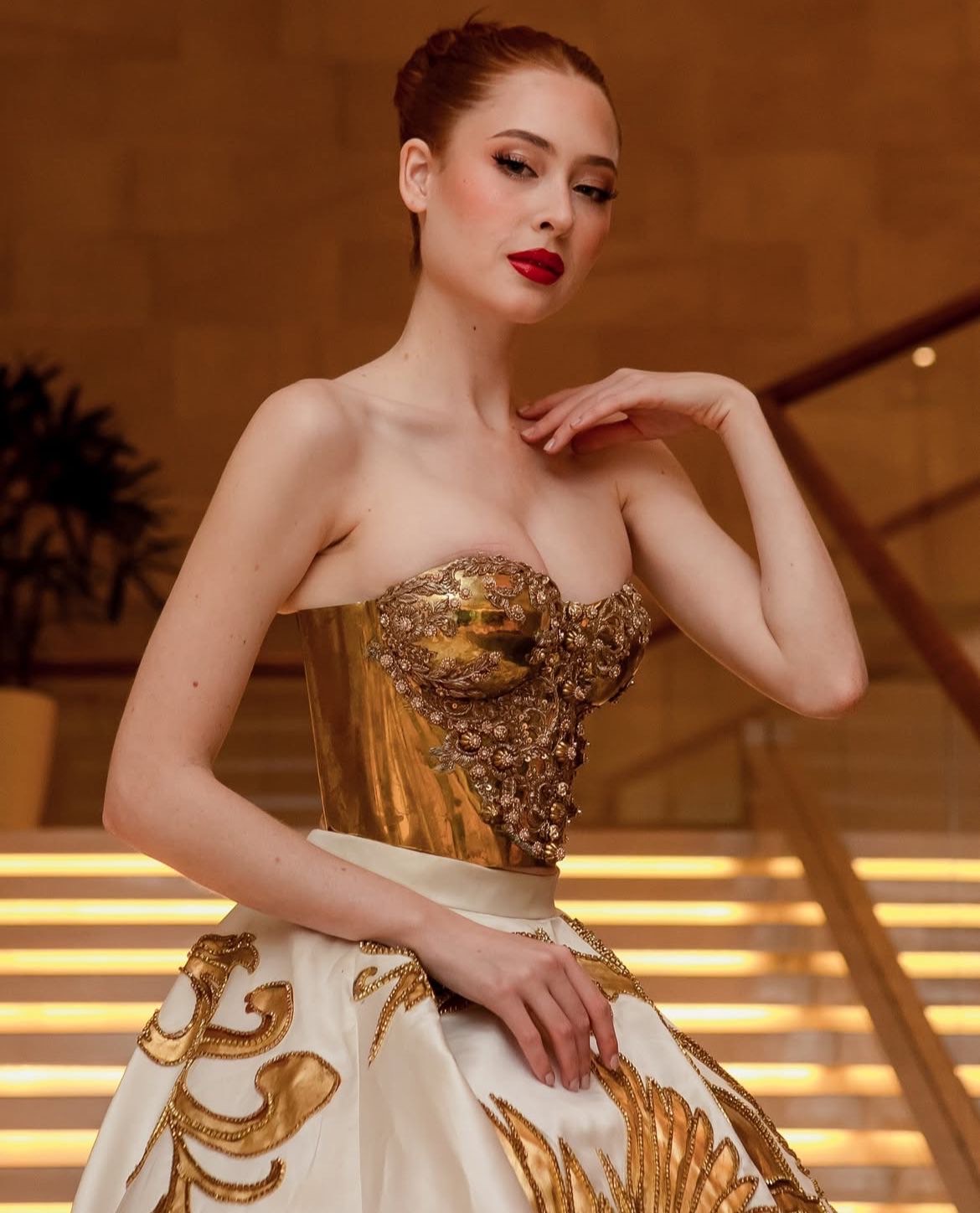 El espectacular vestido que le mereció el galardón fue diseñado por la reconocida diseñadora dominicana Giannina Azar, consolidando una vez más su prestigio en las pasarelas globales. La pieza fue presentada durante la gala celebrada en la India, sede oficial del certamen Miss Mundo este año.