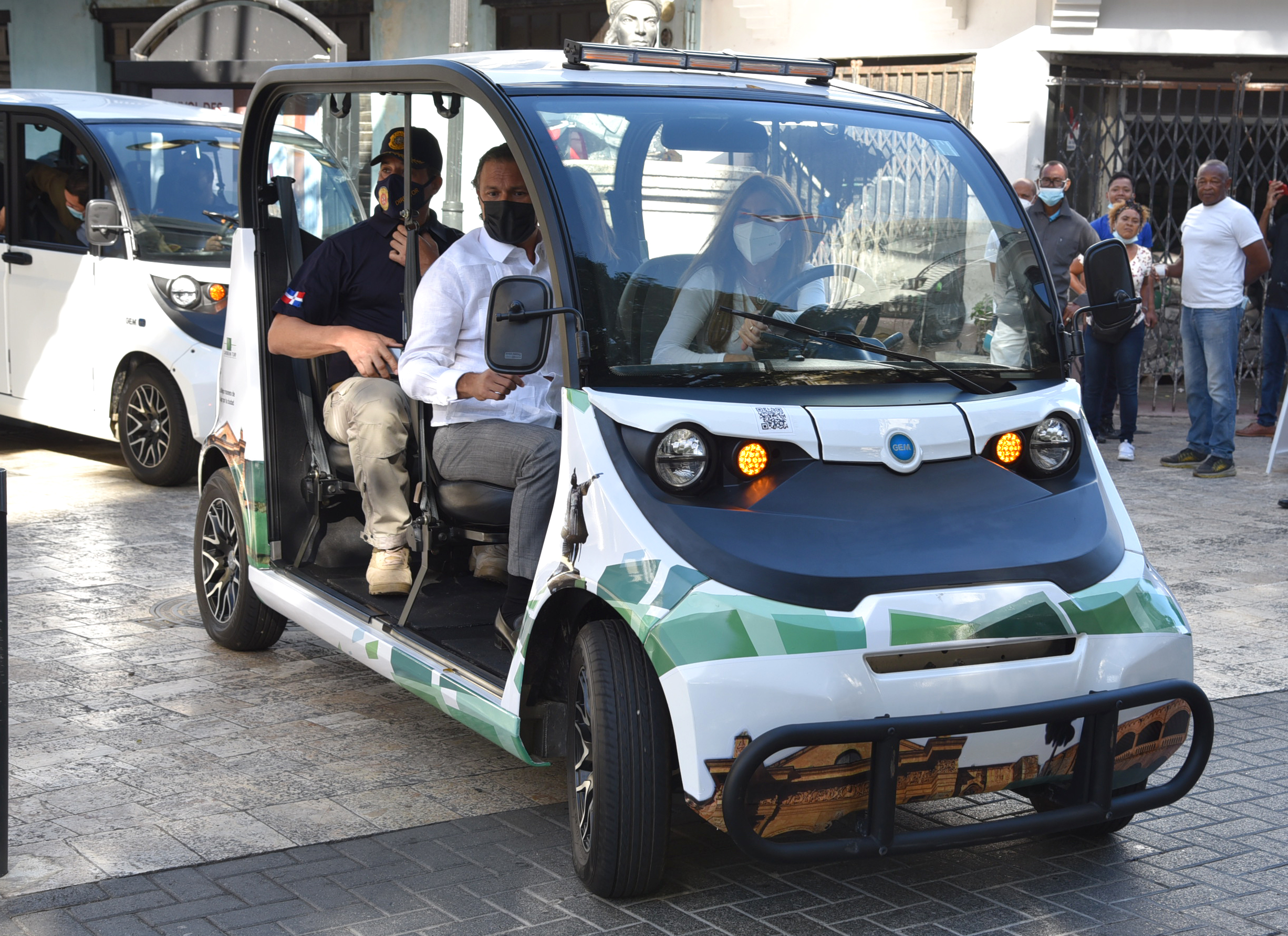 En el acto encabezado por Juan Tomas Díaz Infante, presidente de GEM Dominicana, y la Alcaldesa del Distrito Nacional Carolina Mejía, se hizo entrega formal del vehículo eléctrico del año 2020 con capacidad para cuatro pasajeros, color blanco.