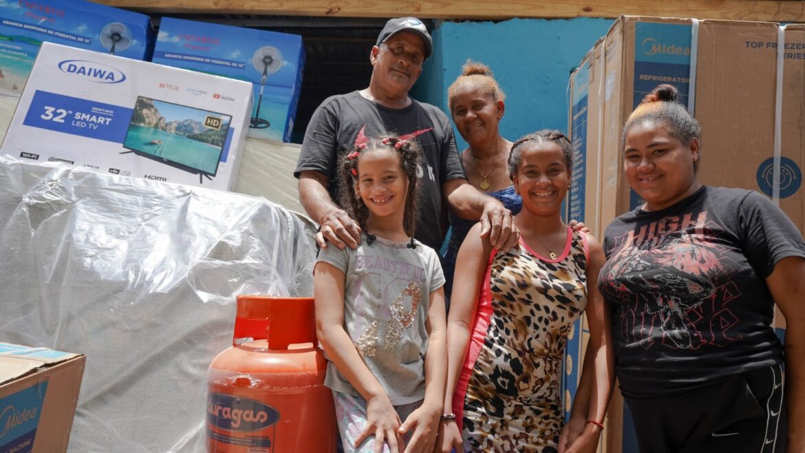 Dentro de la creación de estos importantes programas para mejorar la calidad de vida y afrontar la pobreza en sus diferentes dimensiones, este año fueron impactadas con la entrega de electrodomésticos, enseres del hogar y sustitución de techos de zinc, 117,614 familias, cada uno de estos hogares con aproximadamente cinco personas, lo que equivale al impacto de más de 588,070 dominicanos y dominicanas.