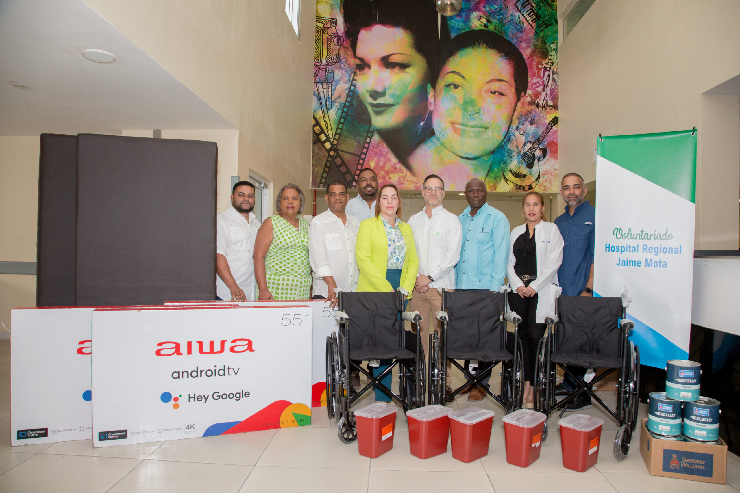 El Voluntariado del Hospital Regional Jaime Mota ha realizado una destacada labor al entregar una segunda tanda de donativos que beneficiarán a los pacientes y al personal médico de este importante centro de salud. En esta ocasión, se han entregado 5 sillas de rueda mecánicas plegables, 10 colchones para camas de recuperación, 30 latas de pintura sin olor, 3 televisores de 55 pulgadas y 5 zafacones para desechos biodegradables.