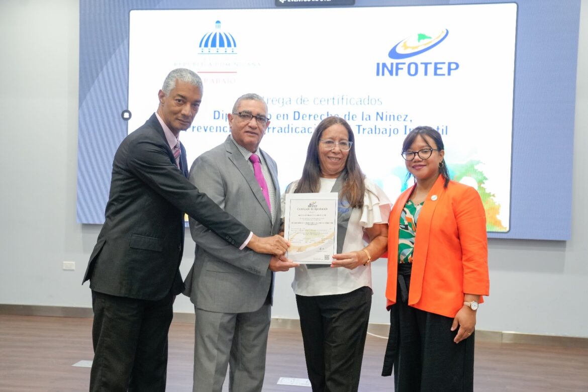 La organización internacional World Vision República Dominicana junto al Instituto Nacional de Formación Técnico Profesional (INFOTEP) entregó los certificados a 44 participantes que concluyeron el Diplomado Derecho de la Niñez, Prevención y Erradicación del Trabajo Infantil, realizado en coordinación con el Ministerio de Trabajo.